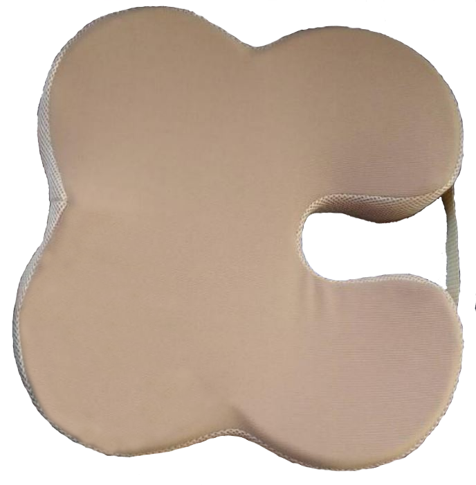 Moulded memory Foam, unique cut section for Coccyx, Encourage correct sitting posture, Mesh fabric with dripped non slip fabric cover, removable cover