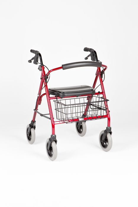 Locking hand brakes, Seat with built-in seat pad, Front wire basket, Flip up back,Foldable,8” Wheels