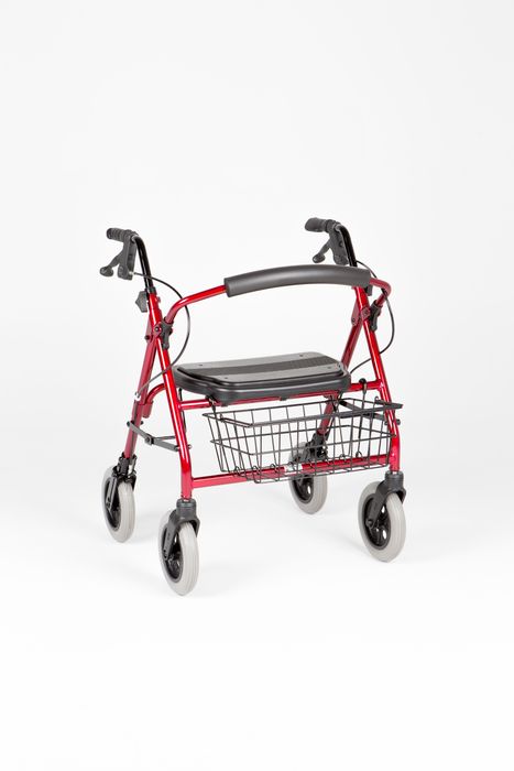 Locking hand brakes, Seat with built-in seat pad, Front wire basket, Flip up back,Foldable,8” Wheels